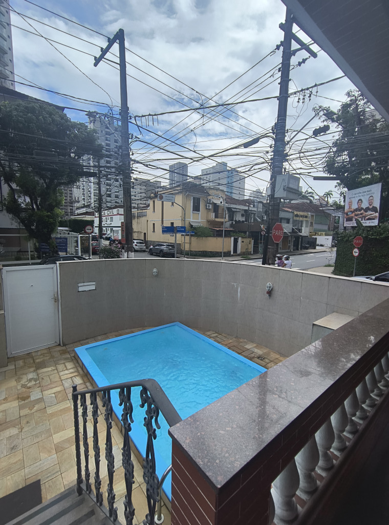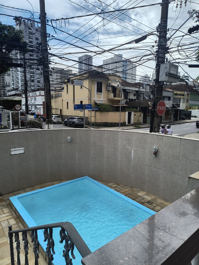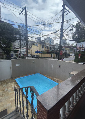 Sobrado no bairro do Gonzaga! 3 dormitórios, dois banheiros, 4 sacadas, piscina, excelente localização! Uma vaga de garagem, sobrado de esquina! Venha visitar!!